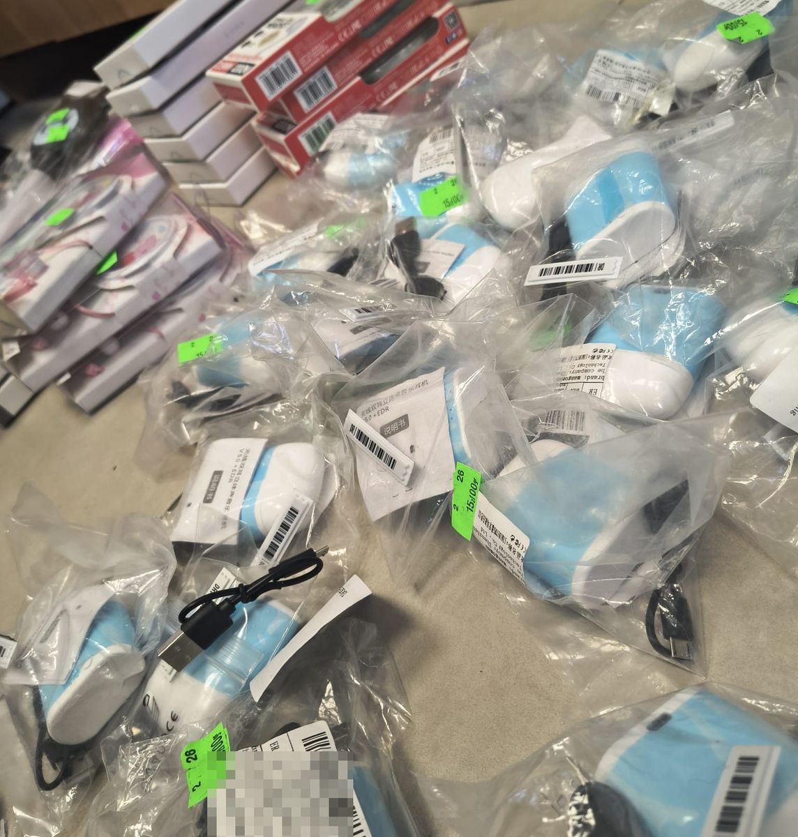 Podczas prowadzonego przeszukania funkcjonariusze zabezpieczyli kilkadziesiąt podrobionych artykułów. Były to m.in. słuchawki do telefonów, ubrania oraz artykuły dla dzieci.